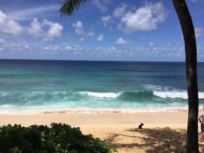 9. Dog patiently waiting for his owner to return from the waves on the North Shore. Specifically, this photo was snapped while standing on a picnic bench at “Pipeline.” I loved watching the dog trot behind his owner as he approached the waves and then retreat to the shade. Russell tried his luck at this famous surfing spot a few days earlier.