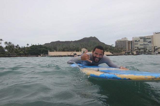 8. Russell giving the shaka during surf lessons, with Diamond Head in the background. Russell wasn’t too excited about the beginner surf lessons Kelly and I signed him up for (I refused to get anywhere near a board with my loose shoulder joints, and Kelly was dying to try), but he ended up having a good time. The professional photographer captured one of my favorite pictures of Russ ever!